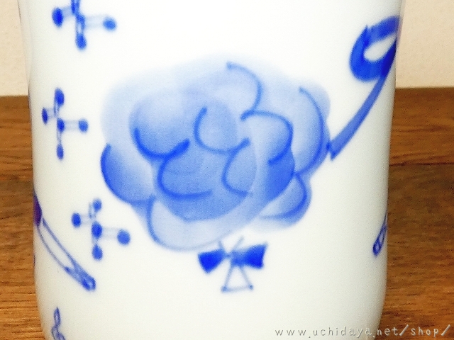 絵付けは呉須による、バレリーナの文様をモチーフに描かれています。