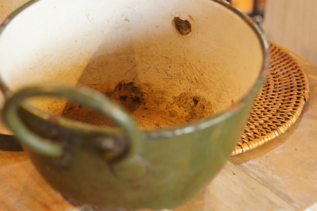使用されていたものなので、ホーローの剥げ、傷、錆は年代相応にあります。