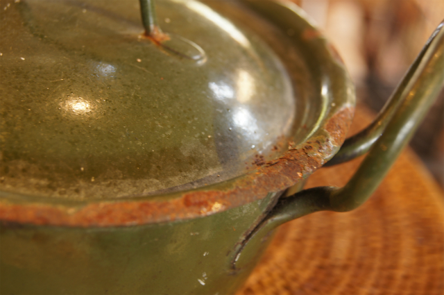 使用されていたものなので、ホーローの剥げ、傷、錆は年代相応にあります。