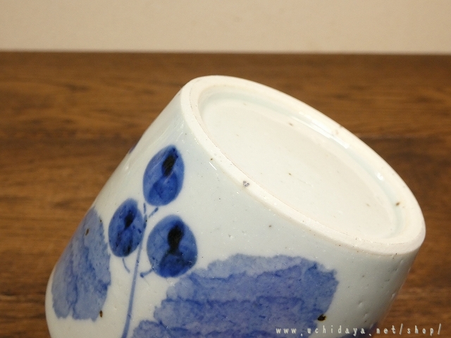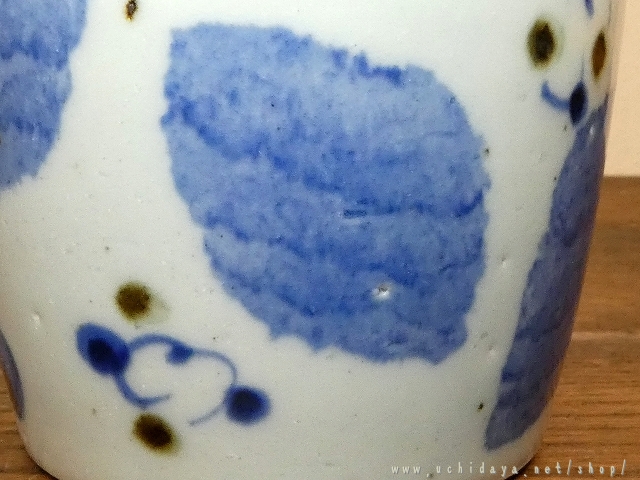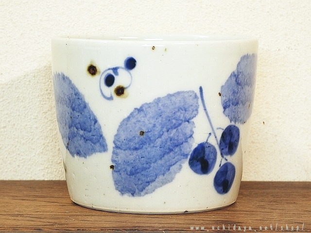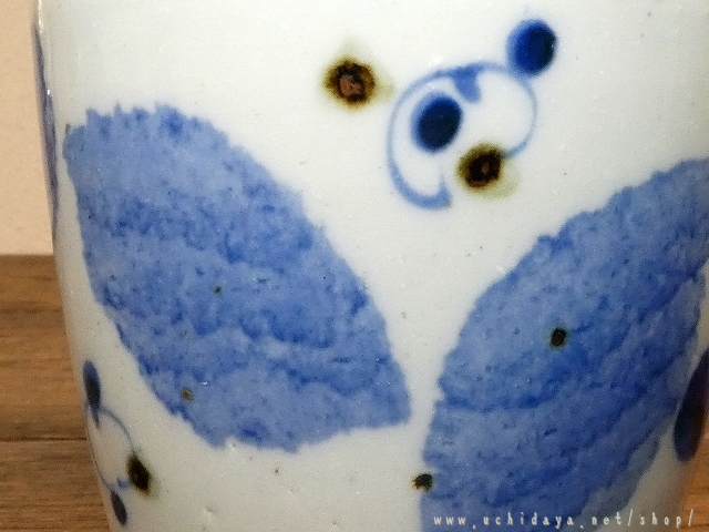 絵付けは和紙を使った染付による、木の葉の文様をモチーフに描かれています。