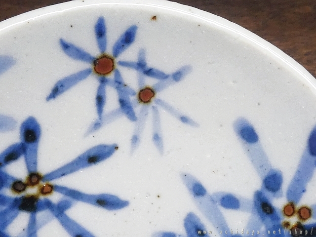 絵付けは和紙を使った染付による、ガーベラの文様をモチーフに描かれています。
