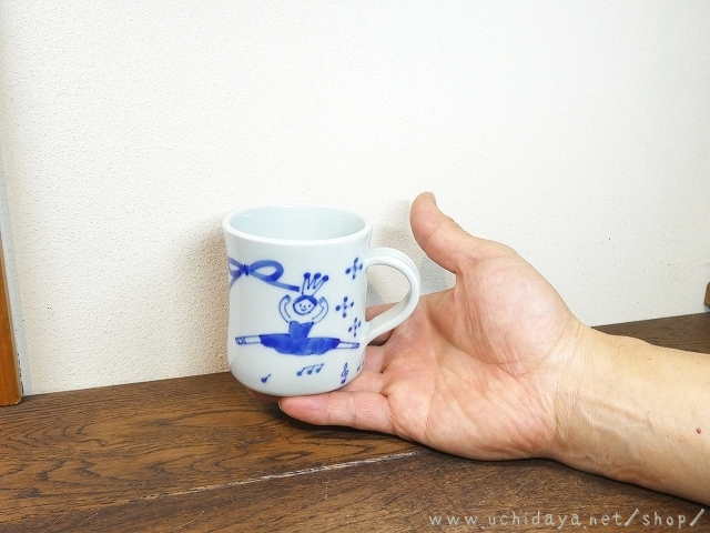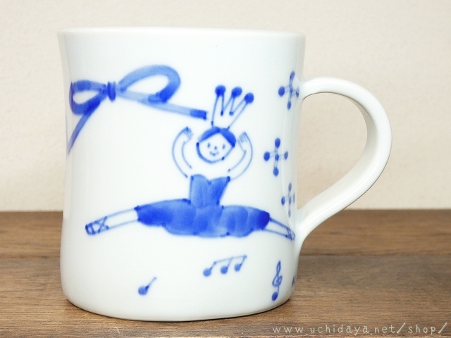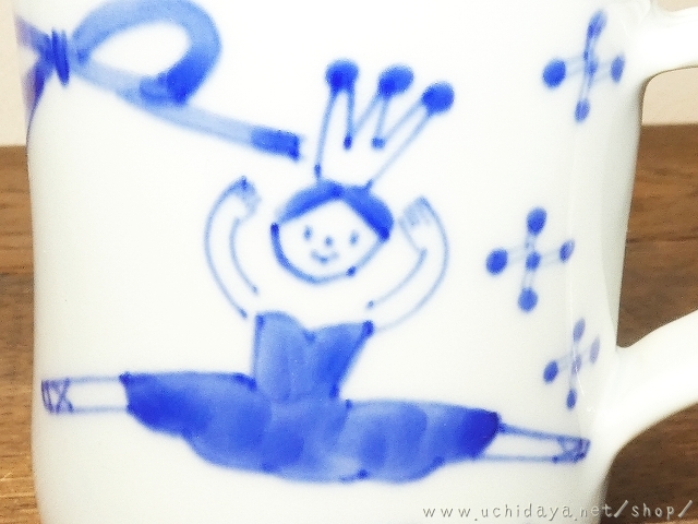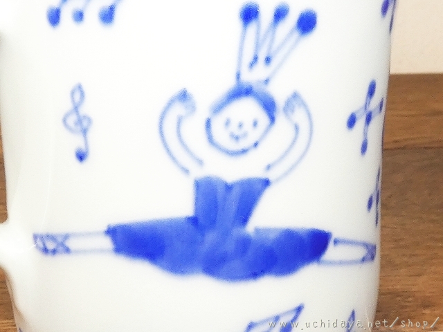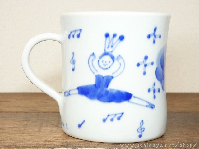 絵付けは呉須による、バレリーナの文様をモチーフに描かれています。