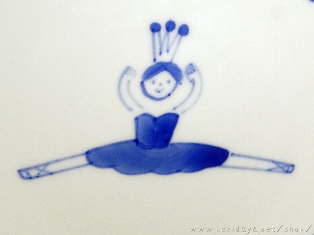 絵付けは呉須による、バレリーナの文様をモチーフに描かれています。