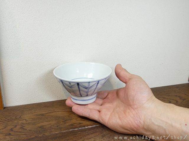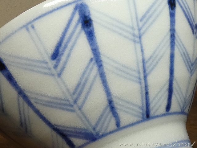 絵付けは呉須という技法で、矢羽 の文様のモチーフを描かれています。