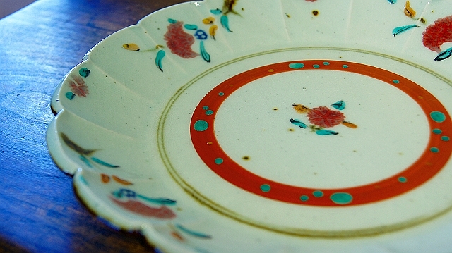 緑や黄色等の上絵が描かれています。