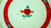絵付けは釉裏紅という技法で、(花)の文様をモチーフに描かれた上に