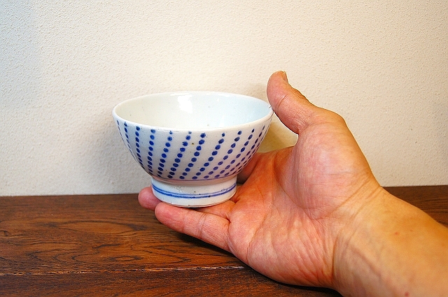 絵付けは呉須という技法で、ドットの文様をモチーフに描かれています。