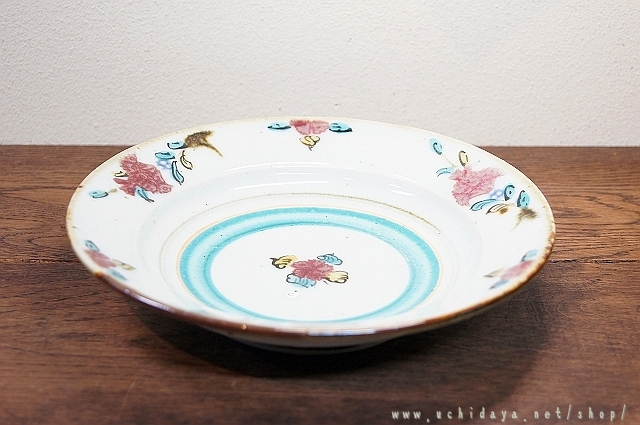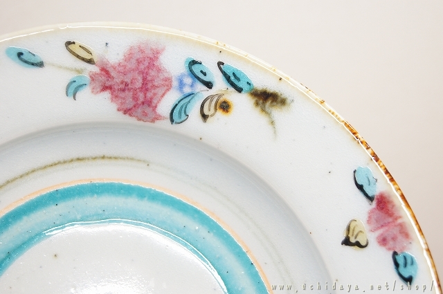 砥部焼 中田窯 6寸リム皿 (加彩花C)  (内田屋通販)