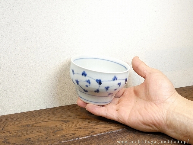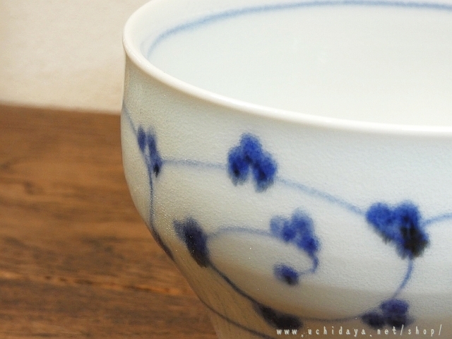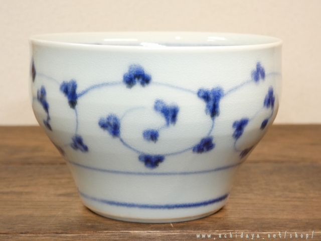 絵付けは呉須という技法で、唐草の文様をモチーフに描かれています。