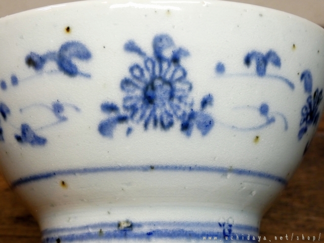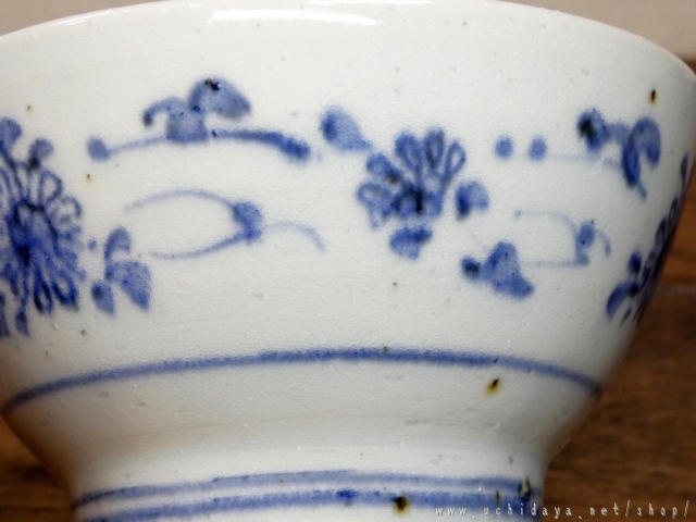 絵付けは呉須という技法で、菊の文様をモチーフに描かれています。