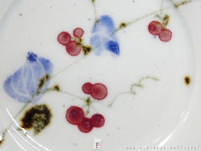絵付けは釉裏紅と呉須いう技法で、山帰来の文様をモチーフに描かれています。