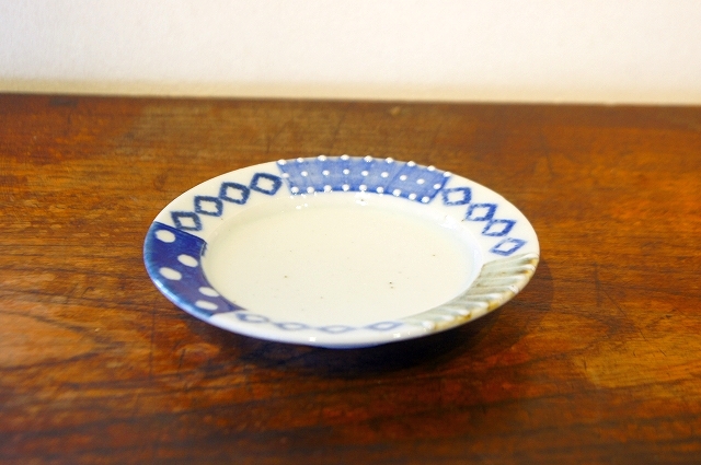 砥部焼 皐月窯 4寸リム皿 (4種文) (内田屋通販)