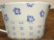 砥部焼のスギウラ工房さんのスープカップです。 とても手間がかかる貼り合わせの技法で、いろいろな柄を組み合わせて作られています。
