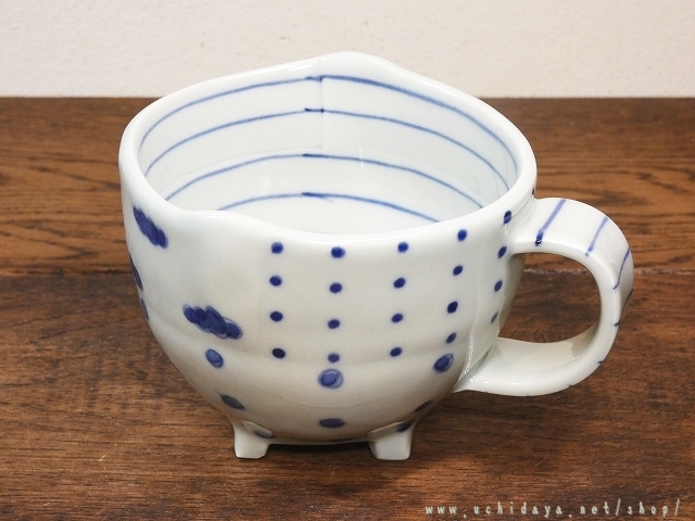 砥部焼 スギウラ工房 足付マグカップ 雲とライン (内田屋通販)