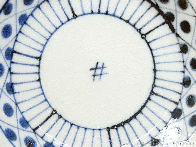 砥部焼の代表的な技法の「染付」で、江戸時代の頃の古砥部の文様を参考に描いた器です。 文様は伝統を活かし、オリジナルに作った土と釉薬を使用することで、貫入の入った、