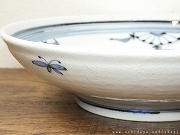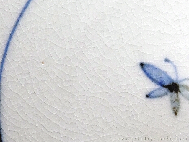 砥部焼の代表的な技法の「染付」で、江戸時代の頃の古砥部の文様を参考に描いた器です。 文様は伝統を活かし、オリジナルに作った土と釉薬を使用することで、貫入の入った、