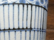 砥部焼の代表的な技法の「染付」で、江戸時代の頃の古砥部の文様を参考に描いた器です。 文様は伝統を活かし、オリジナルに作った土と釉薬を使用することで、貫入の入った、