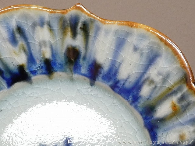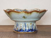 砥部焼 陶房遊 足付鉢 豆 錆青 (内田屋通販)